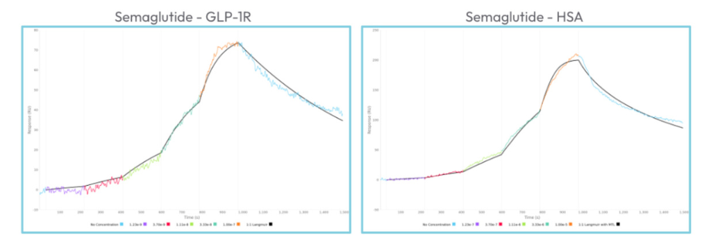 In a recent application highlight, Nicoya demonstrated how Revo enables reliable kinetic analysis of semaglutide binding to GLP-1R and HSA using just 2 µL per sample.